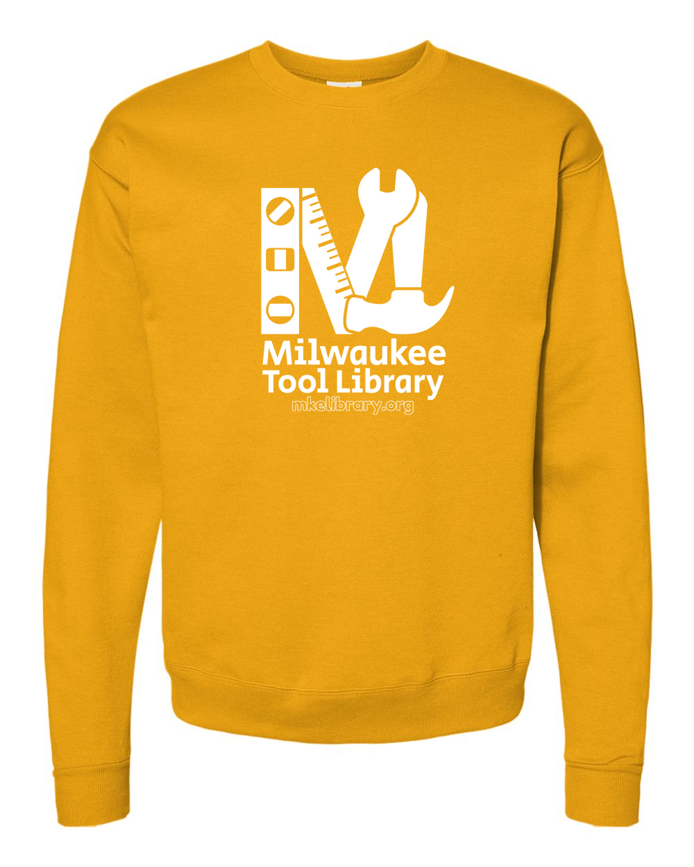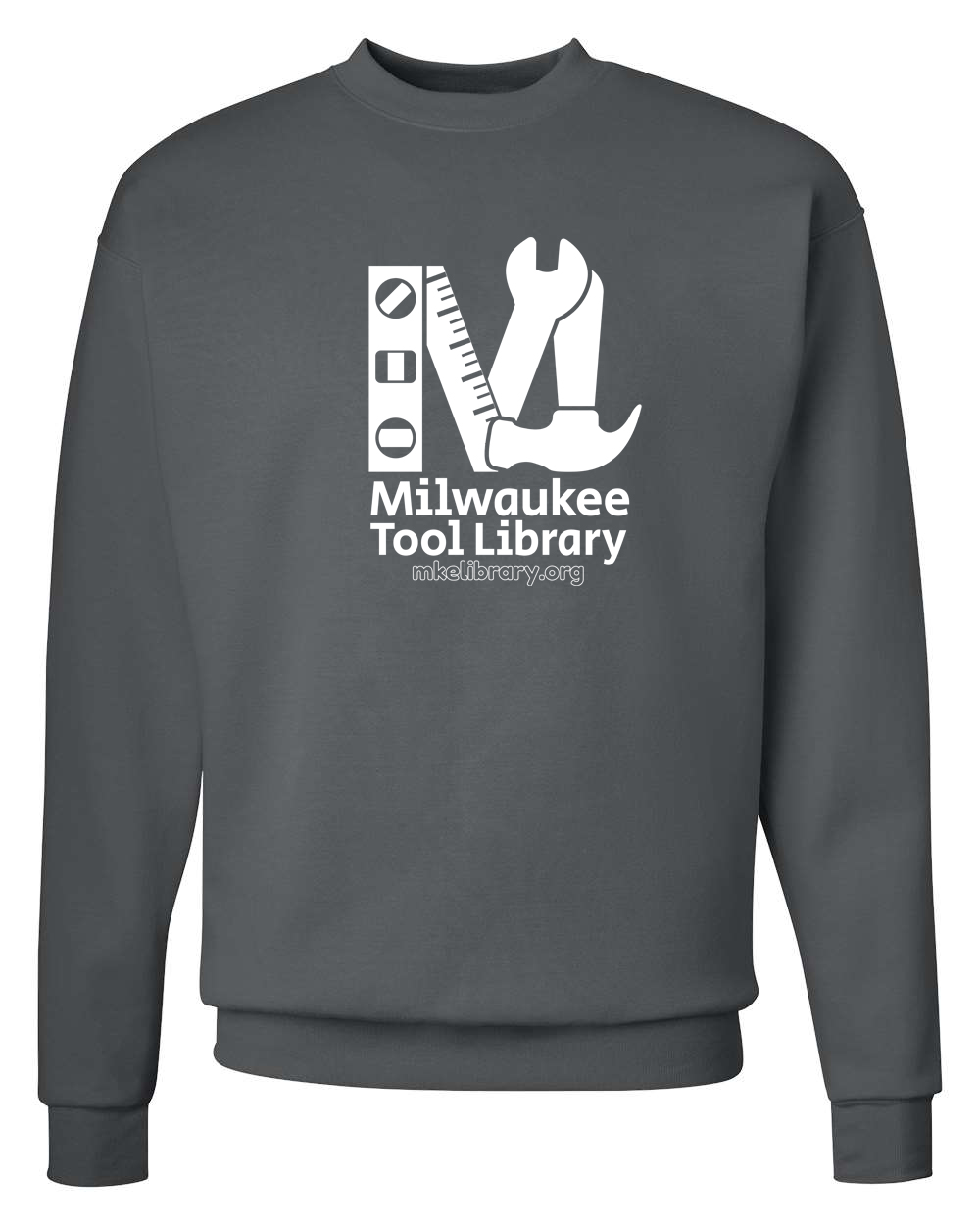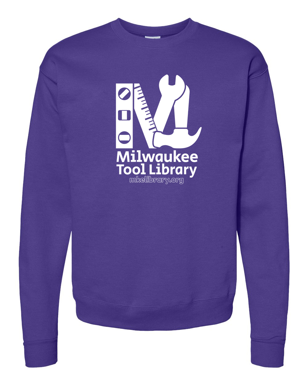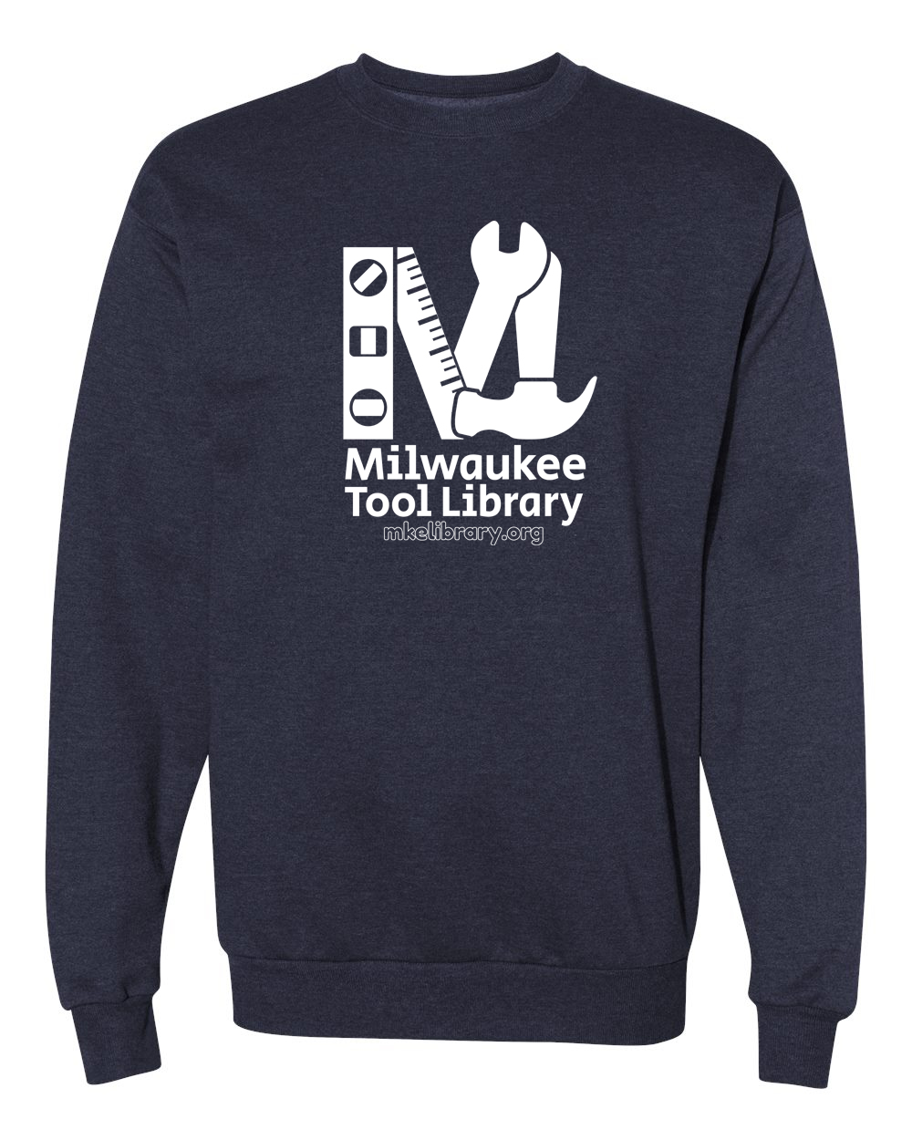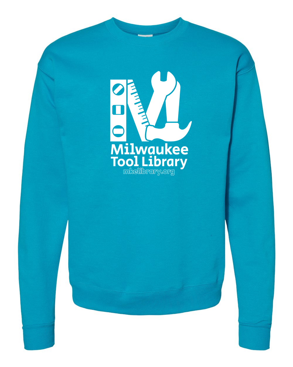 A super soft and cozy crew-neck sweater in fun colors, sporting our one-color Tool Library logo!